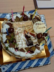 ケーキ🎂(転写プレートが暑さで少し溶けてしまったけど😅)