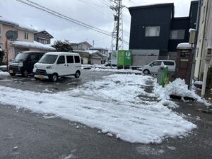 1月3日初っ端から雪かきです会社の駐車場を社長と息子と社長の弟達、5人で2時間汗をかいてびしょびしょ💦